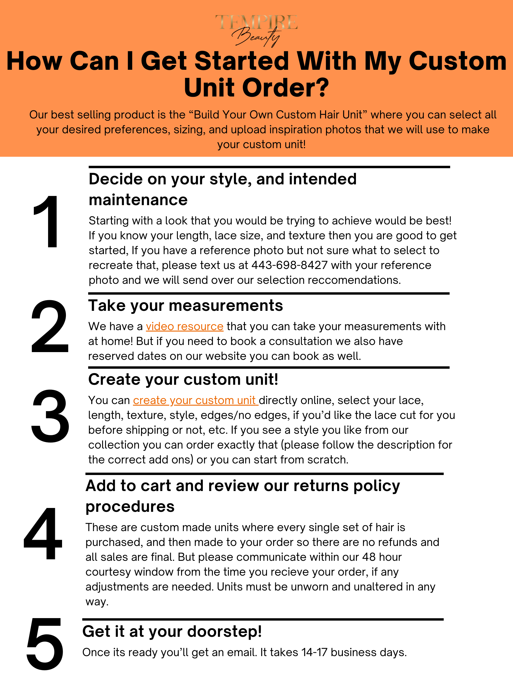 - Please wait at least 14-17 work days for your order to be fulfilled for custom units. and 7-10 days for premade units, bundles, and lace individual items.